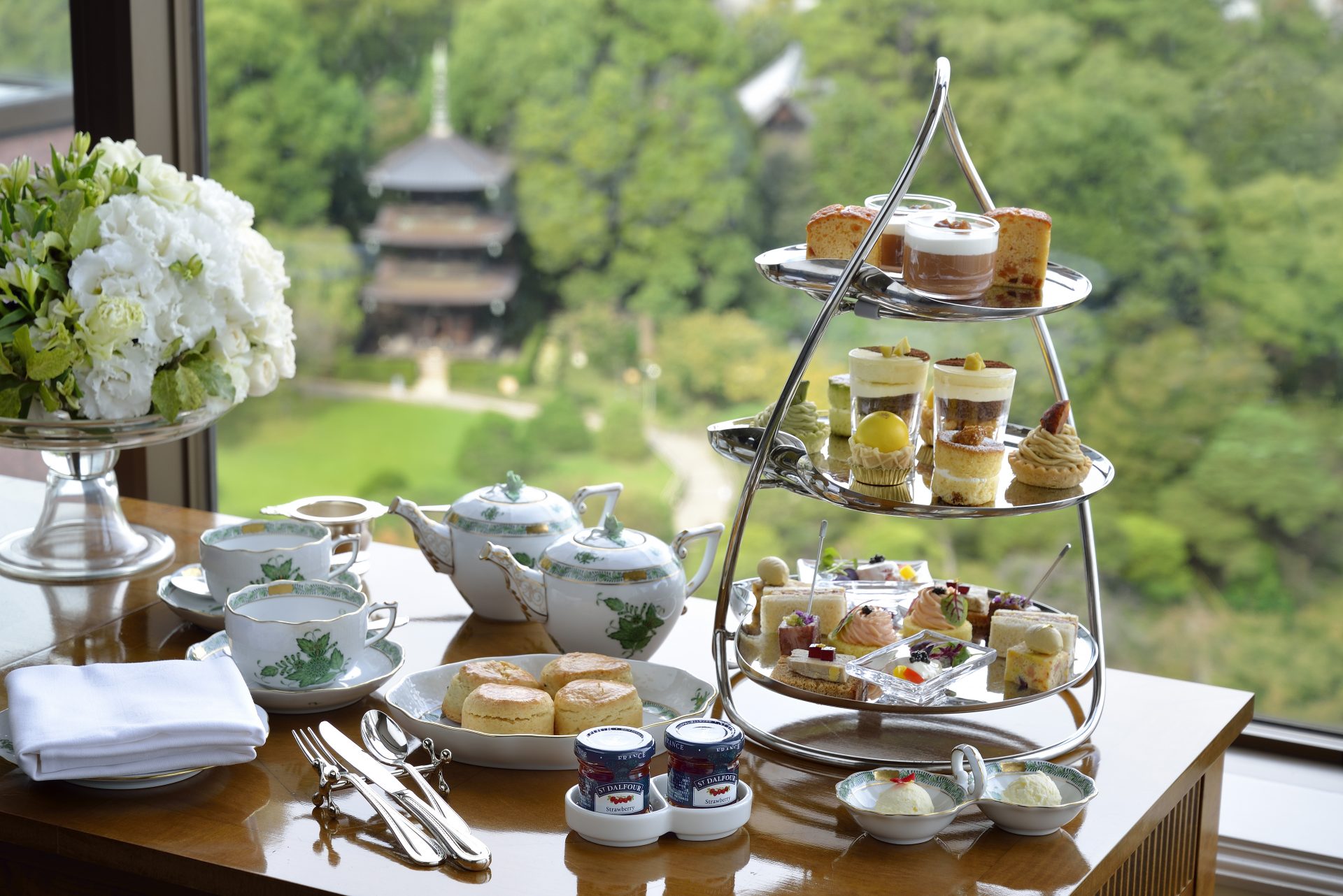 ホテルの高層階(12 階)に位置し、広大な庭園を眺望できるご宿泊者様限定のアフタヌーンティーラウンジ「パゴダルーム」。