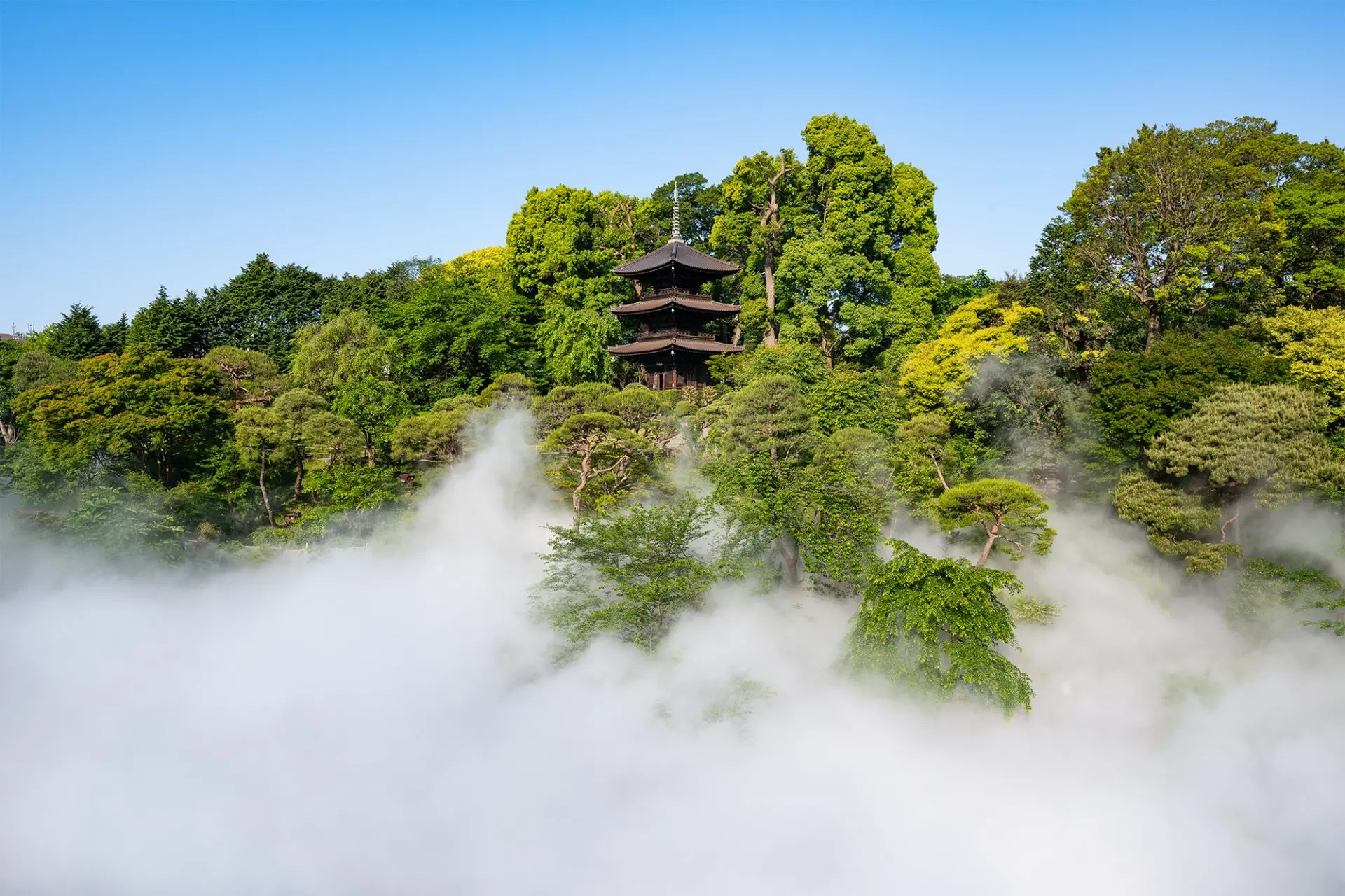 都会の森を彩る奇跡の絶景・東京雲海。期間中はミスト量を通常の200%増にした“超雲海”が出現します。