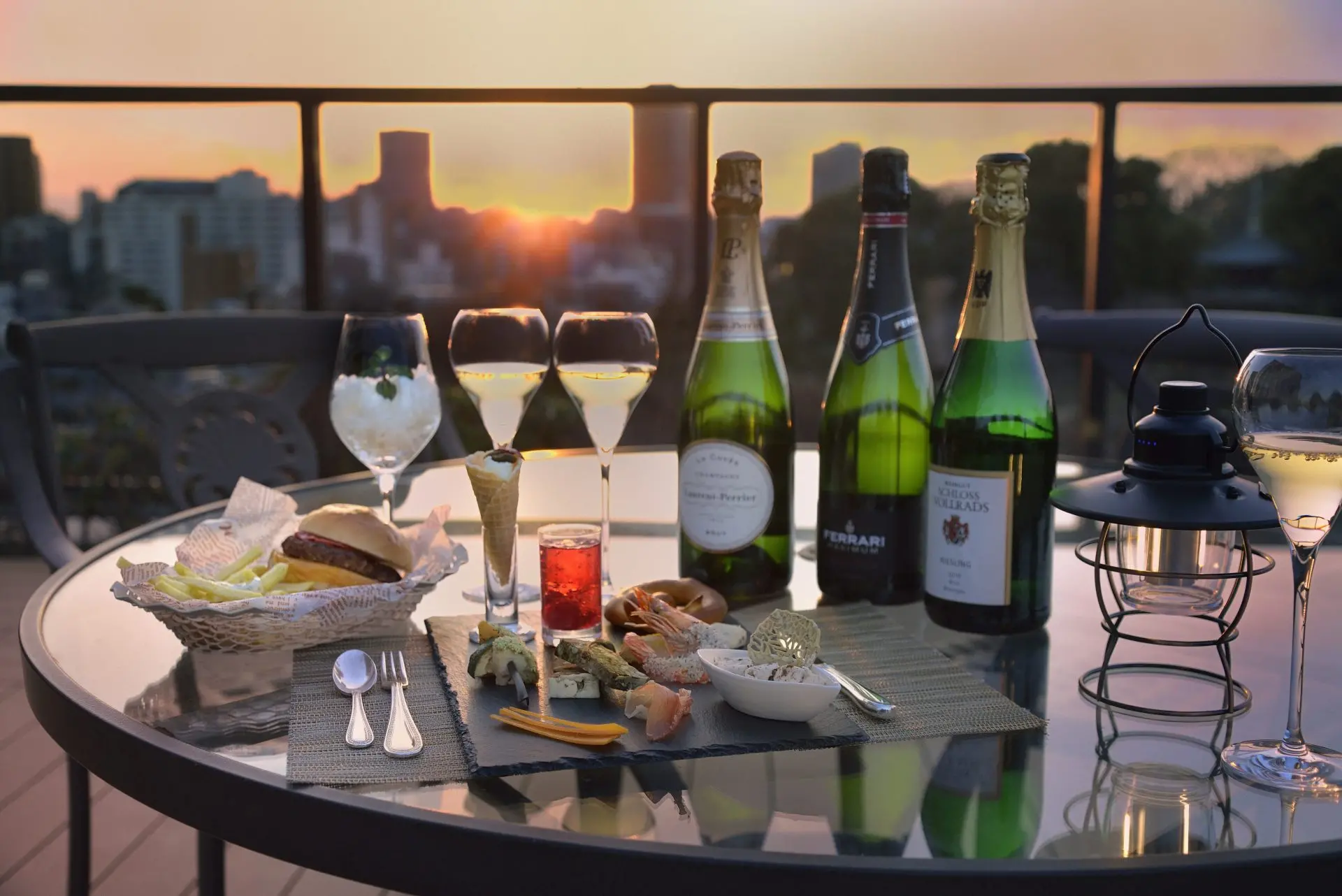 リゾートのガーデンテラスのような空間でオードブルプレートと世界のスパークリングワイン(フランス・イタリア・ドイツ)をフリーフローで飲み比べるイベント。フードメニューは、それぞれのドリンクに合わせた各国の特色ある料理を用意。