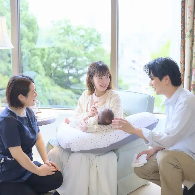 滞在中は、助産師による授乳サポートや乳房ケアを無料で受けられるほか、専門知識をもつ看護師・保育士が育児やお世話のアドバイスをいたします。