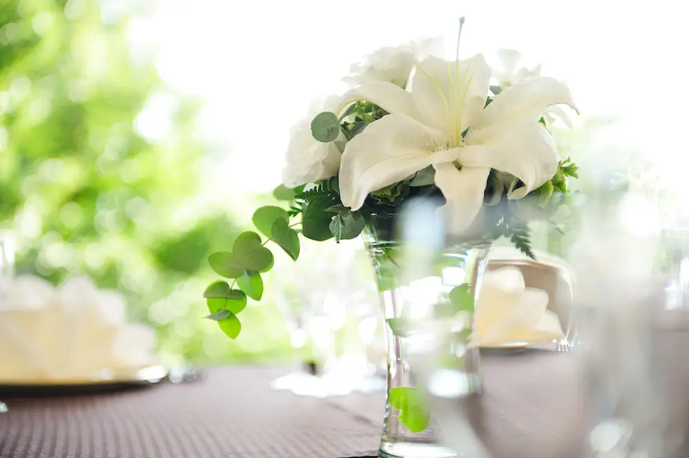 窓から差し込む明るい日差しと庭園の緑を直に感じながらお過ごしいただける会場です。