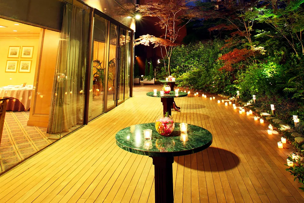 プライベートテラスでの、邸宅風のガーデンパーティーも魅力の一つです。