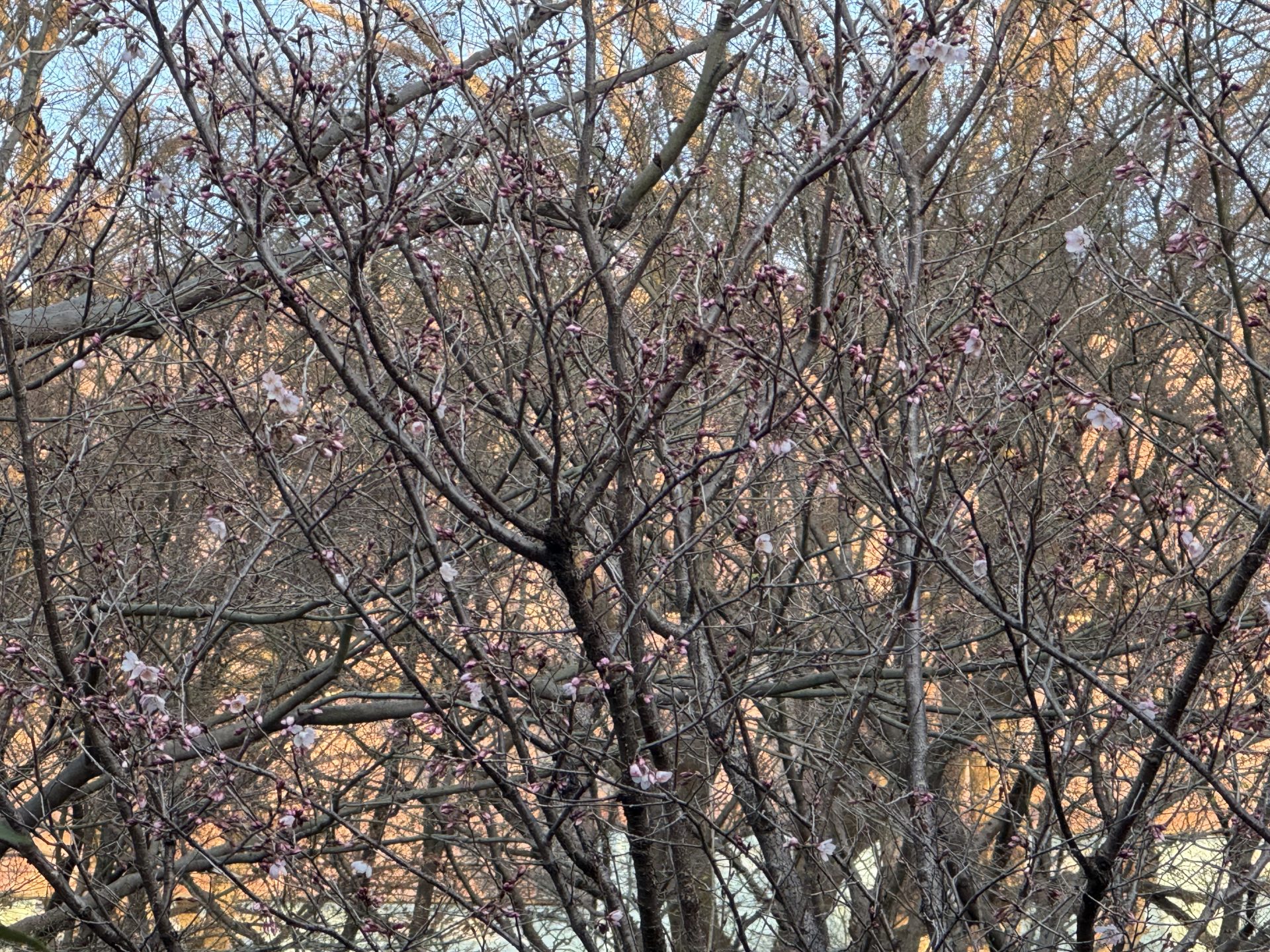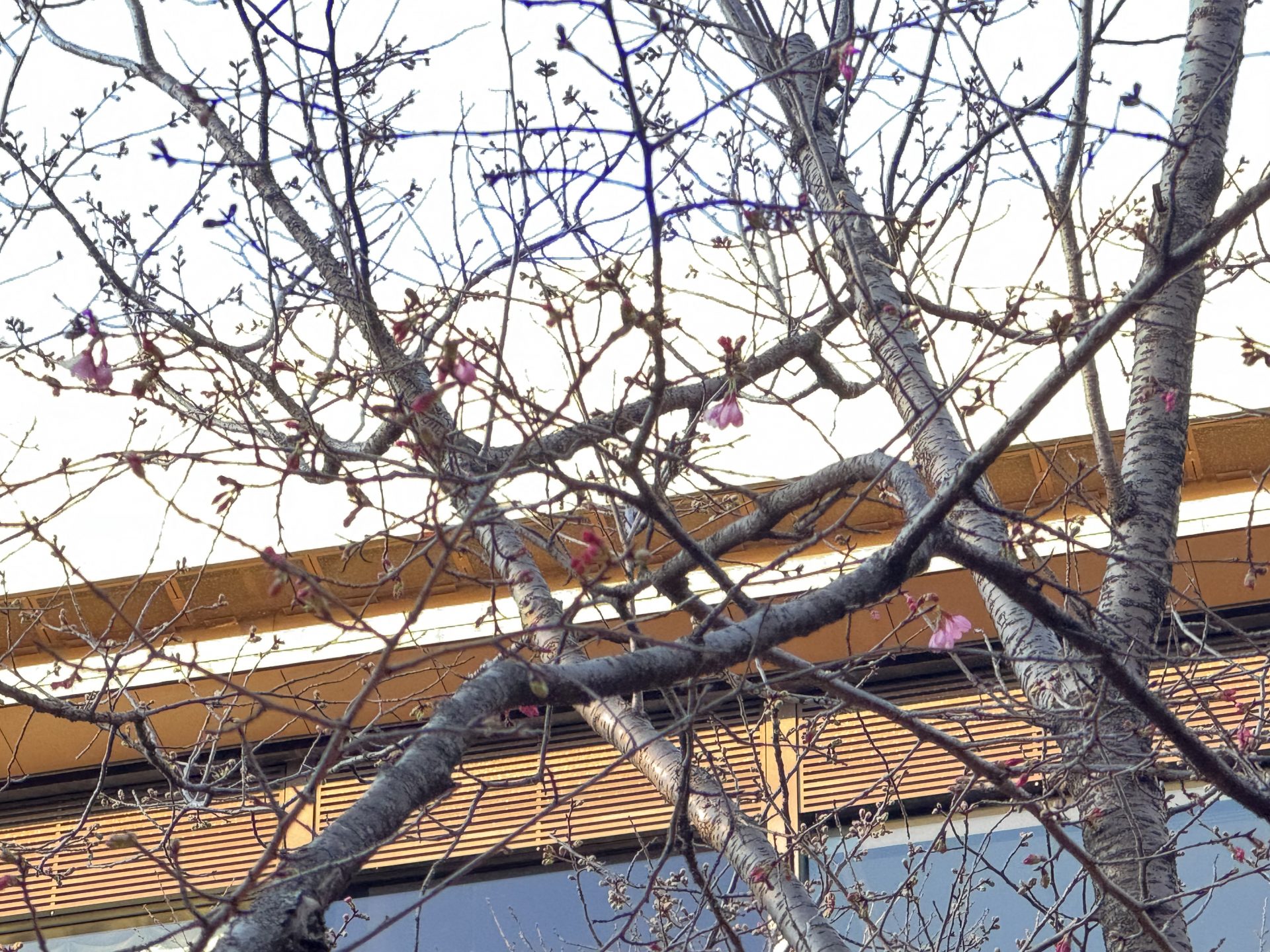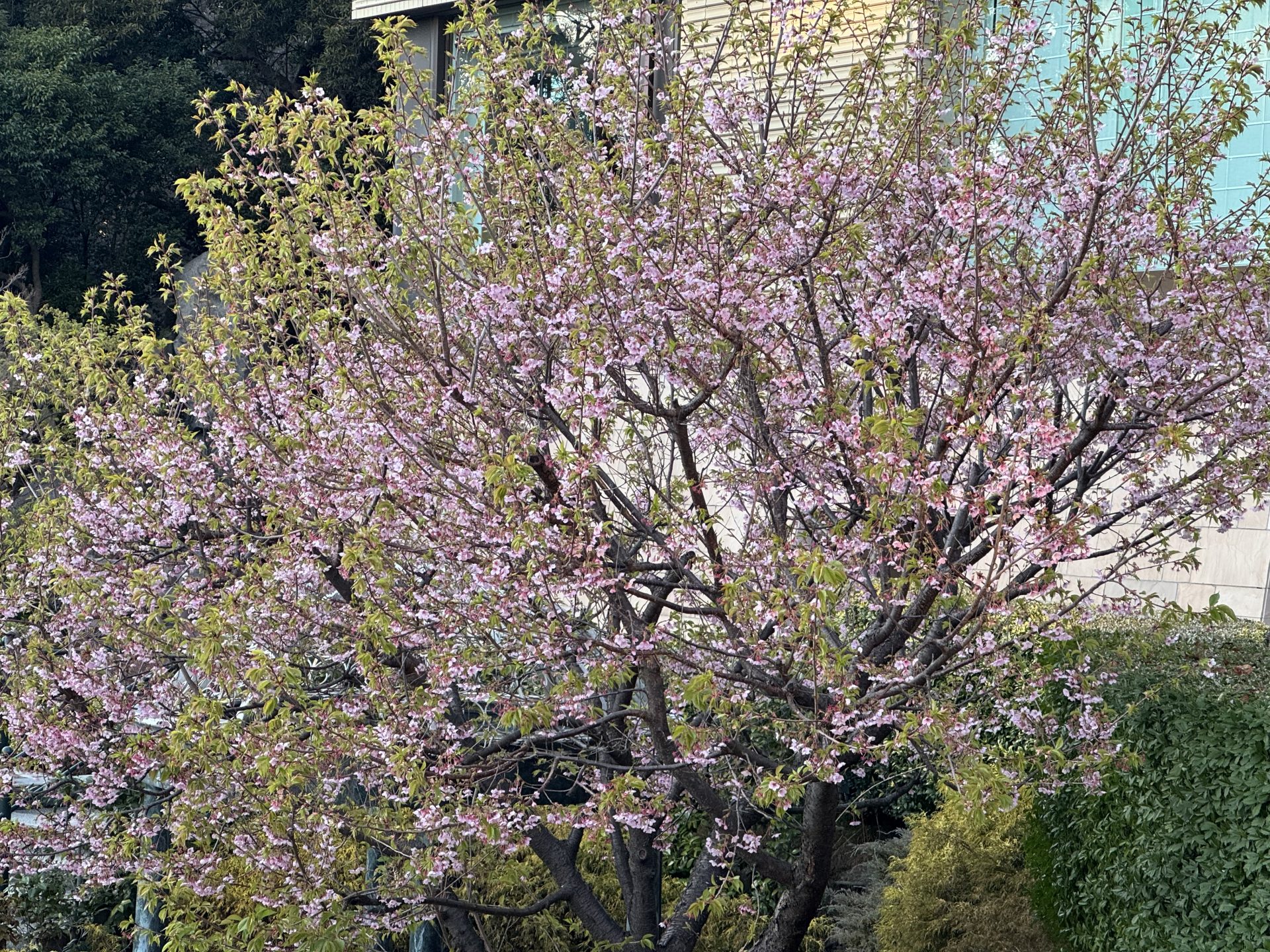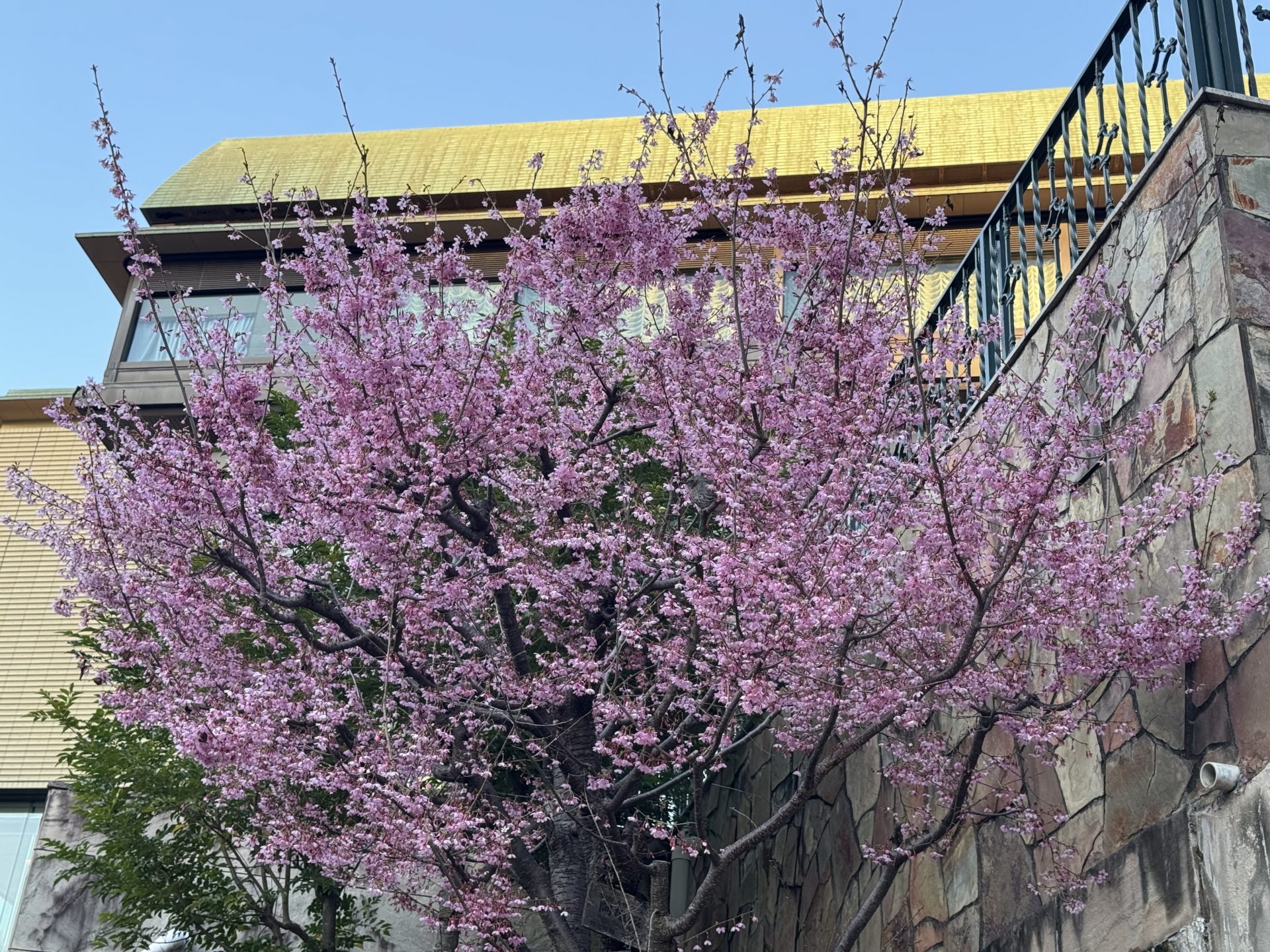 ヴェルデテラスへの階段付近日に日に暖かくなるなか、おかめ桜は満開を迎えております。