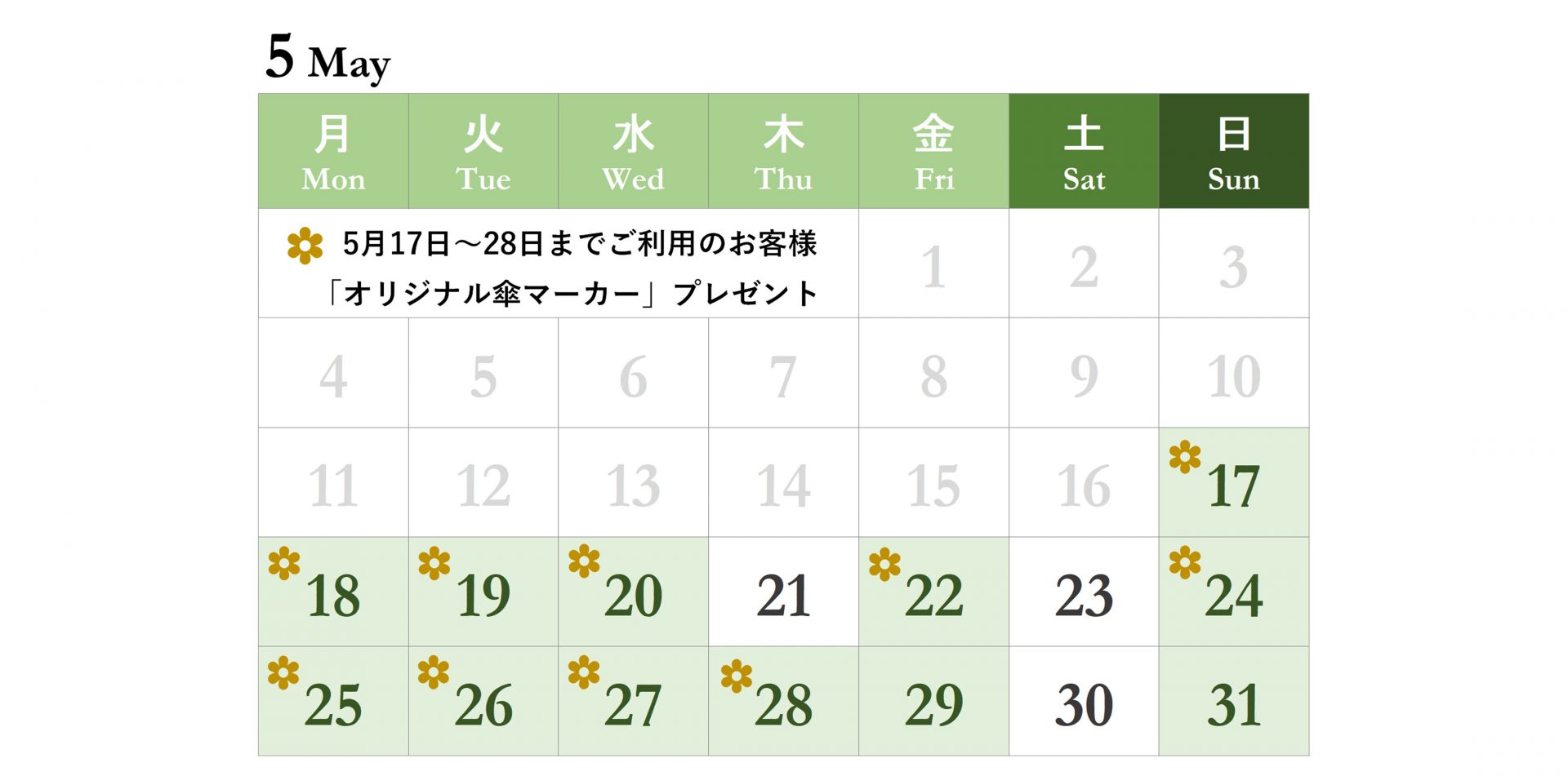 【開催日】 ※3月31日(火)現在 ★5月28日(木)追加!傘マーカーもプレゼント