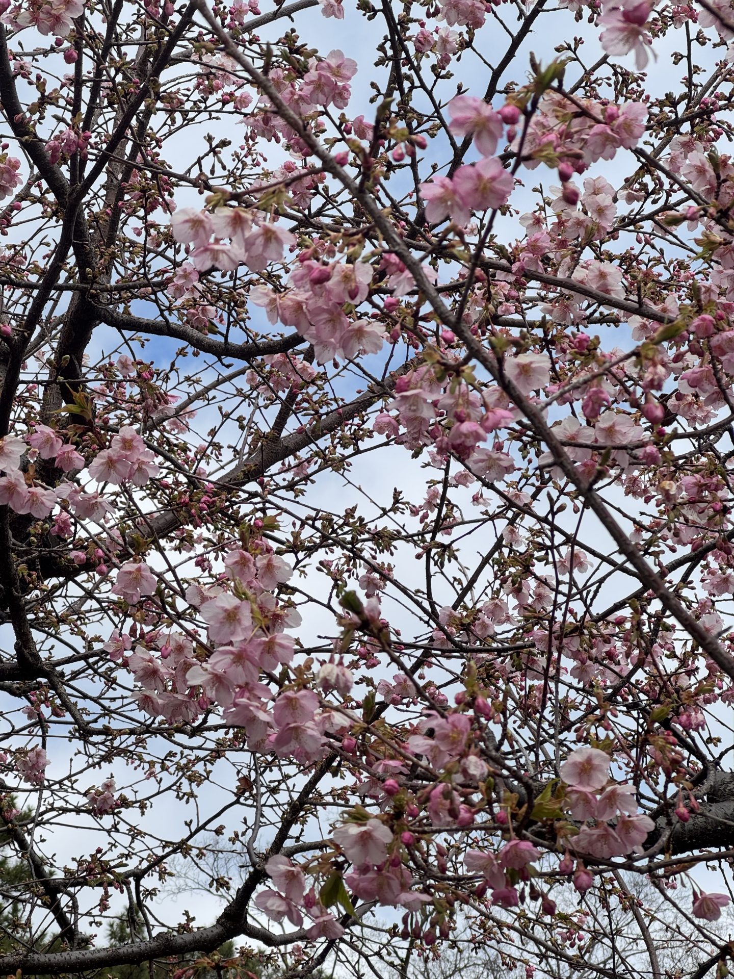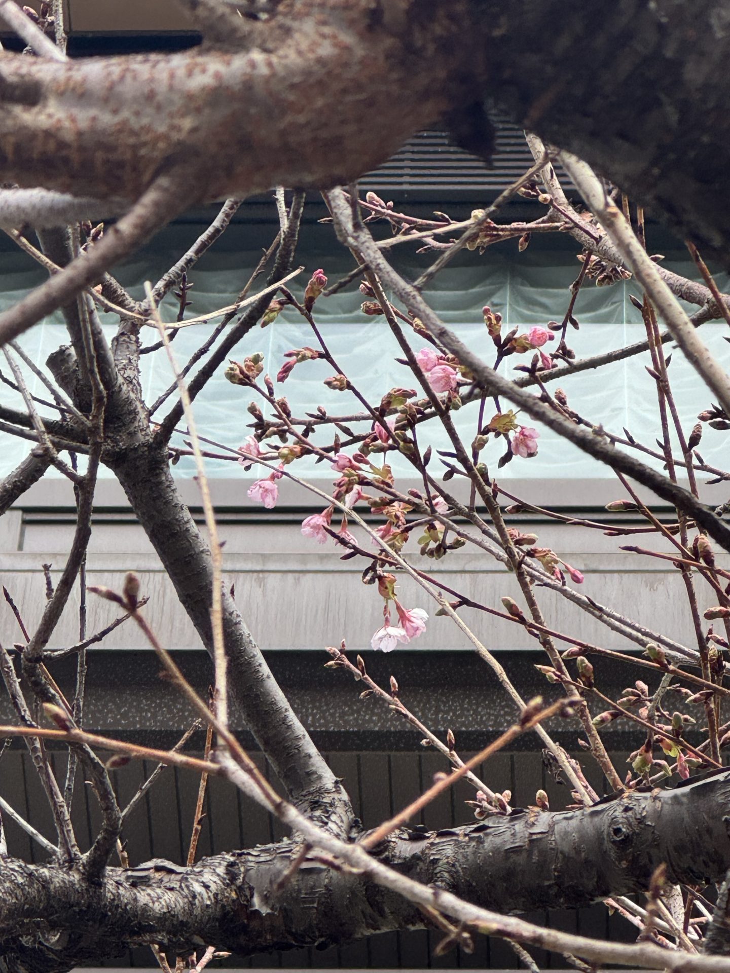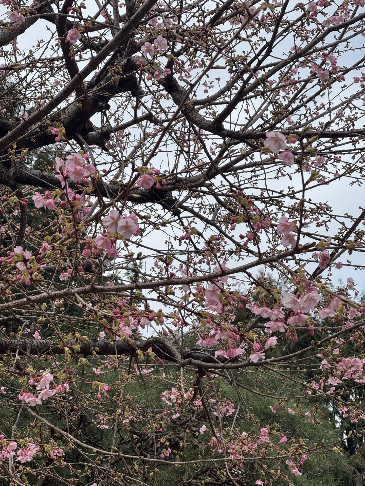 2月12日(木)、春の気配を感じるなか、庭園の修善寺寒桜が開花しました。