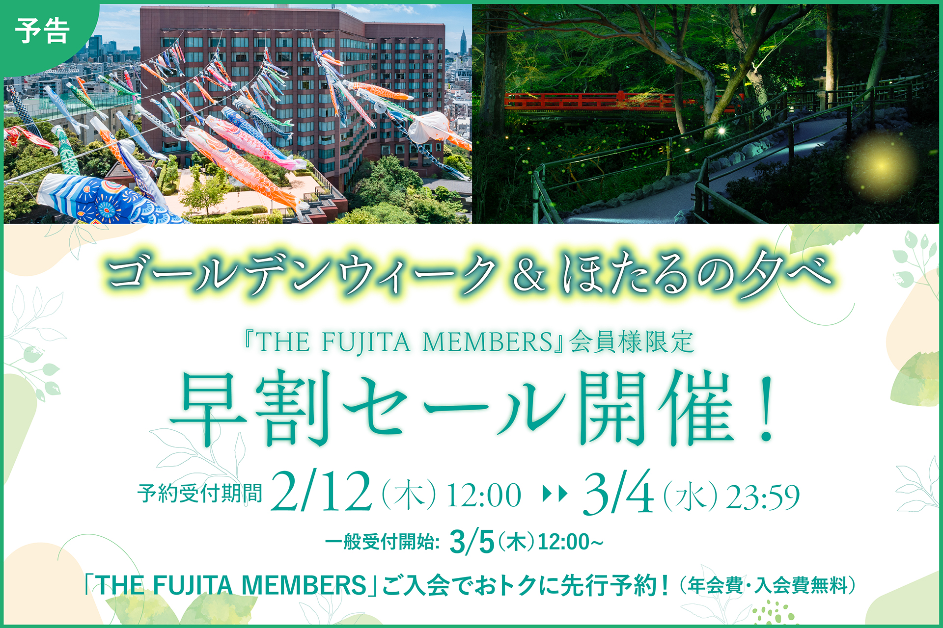 ・ゴールデンウィーク&ほたるの夕べ早割セールは、THE FUJITA MEMBERS会員限定のタイムセールです。