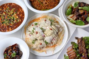 肉厚生木耳の桜海老XO醤風味/大山鶏の葱生姜ソース/緑茶ポークのチャーシュー/牛肉の紹興酒煮込み/黄にらと葱の香港焼きそば など