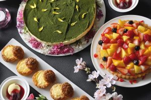 チェリージュビレ バニラアイス/ワッフルフルーツサンド/つばき茶のシフォンケーキと桜クリーム/宇治抹茶のティラミス/こだわり卵のカスタードプリン/ミックスフルーツタルト/ミルクレープ/ガトーショコラ/エルダーフラワーシロップのゼリー/アイス・シャーベット各種 など