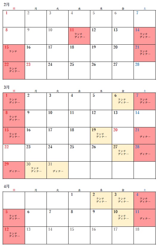 2月11日(水・祝) ~ 4月12日(日) ※特定日開催