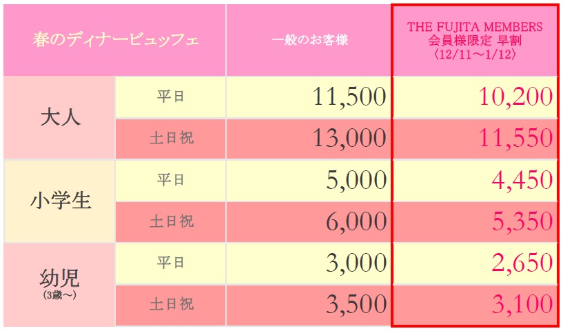 < THE FUJITA MEMBERS 早割料金 >
