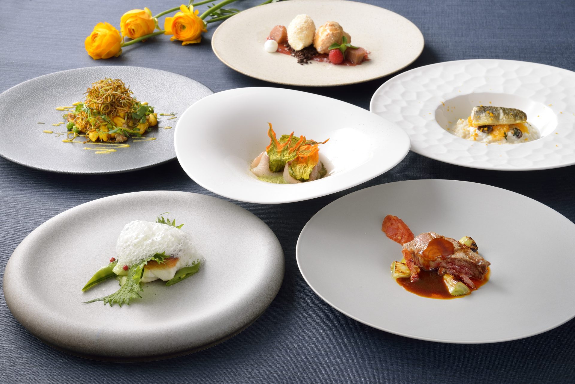 涼やかな初夏の森を思わせる、美しく軽やかなランチコースをご用意いたしました。柑橘の香りが爽やかに広がる真鯛と帆立のマリネには、香ばしく焼き上げたパイを添え、マルサラワインを効かせたマスカルポーネクリームを合わせました。味わいと食感のコントラストが楽しめる一皿です。