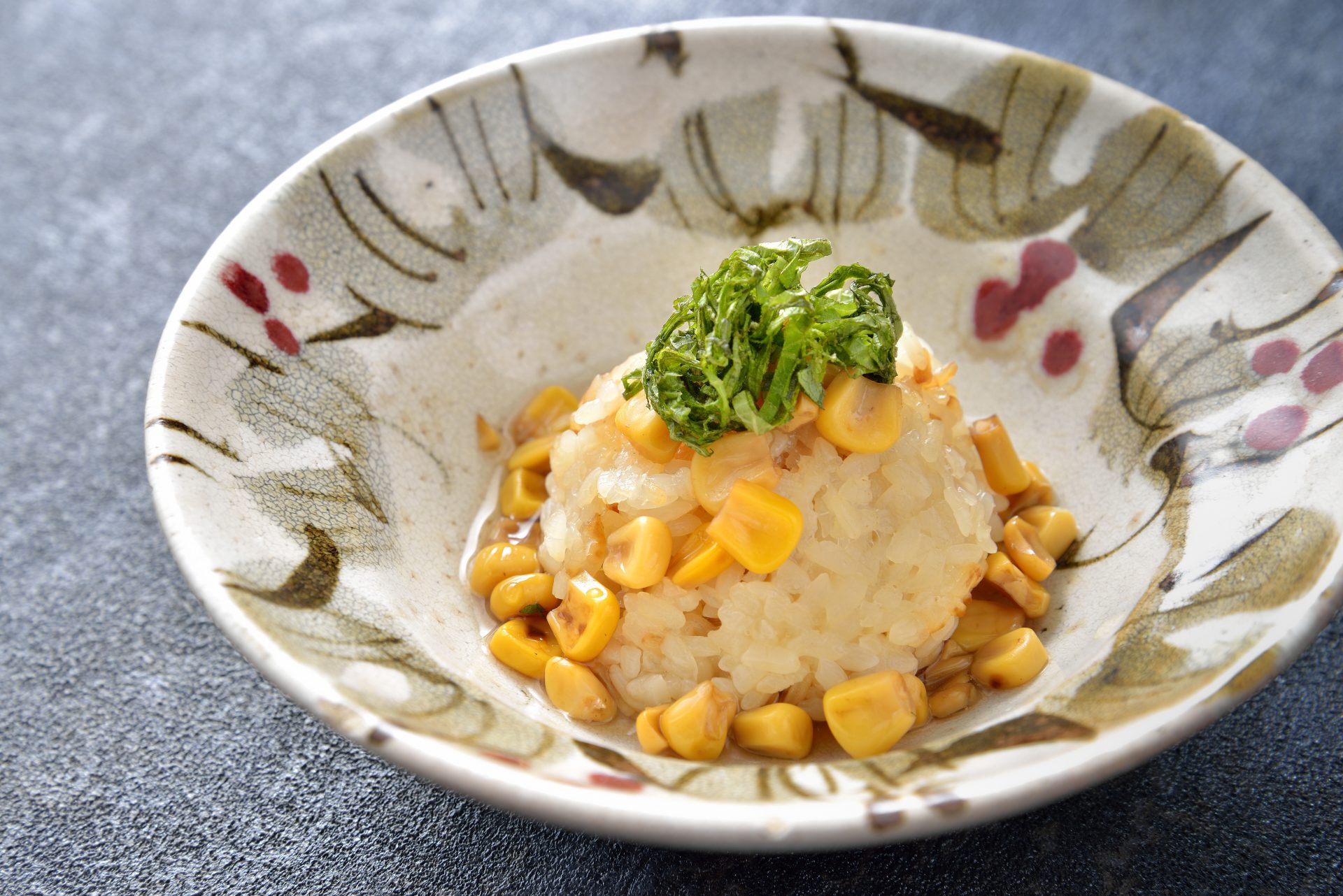 玉蜀黍おこわ 針大葉 香の物 止椀