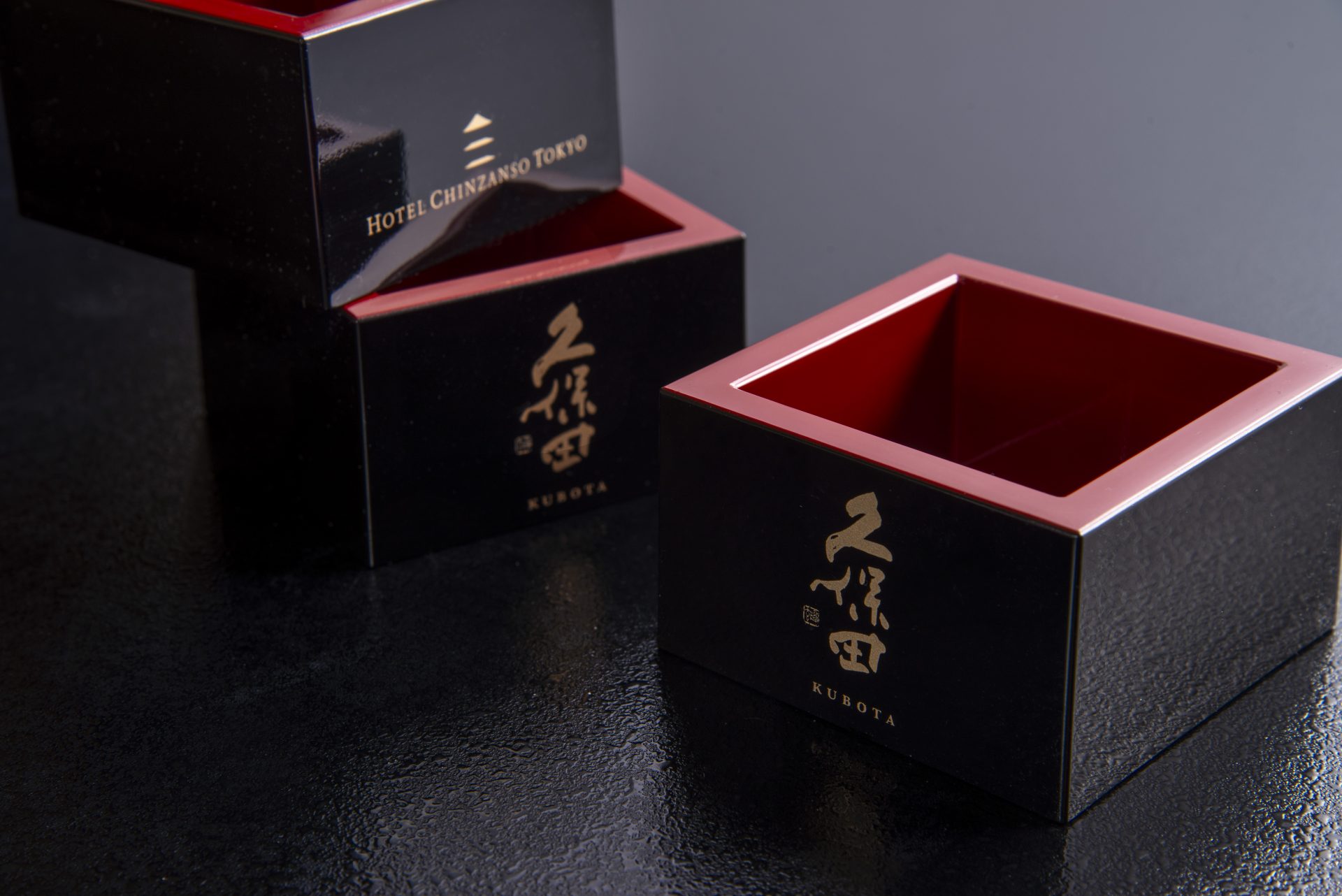 表面には「久保田」のロゴ、裏面には「ホテル椿山荘東京」のロゴを配置。