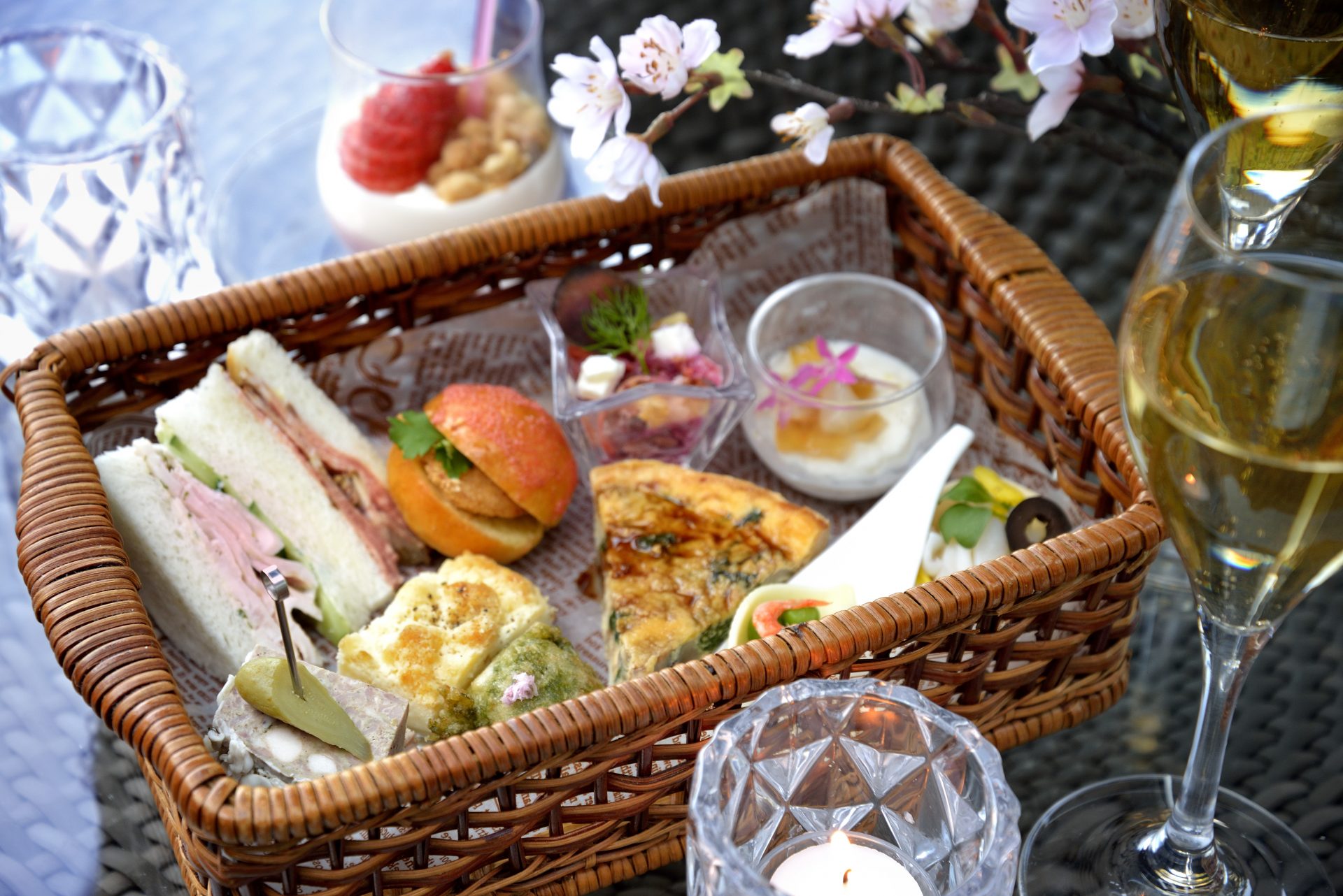 桜とシャンパンが彩る、春限定のラグジュアリーなピクニックを。シャンパン2種とロゼスパークリングワイン1種を、開放感あふれるテラスから庭園に咲く桜を眺めながらお楽しみいただけるこの時期限定のプランをご用意いたしました。お酒が苦手な方のためのノンアルコールプランもご用意しております。