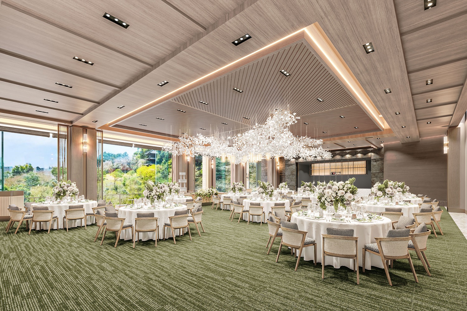 2026年10月グランドオープン:ホテル随一の眺望をのぞむ披露宴会場「フォレスタ」。